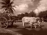 Les chars à boeuf sont encore utilisés par certains producteurs pour véhiculer la canne à la distillerie |