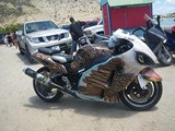 Nos vélos qui, en plus des ballades, nous ont servi à aller chercher notre nouveau guindeau | Elles se font de plus en plus rares les maisons en bardeau! | C'est pas le cas des motos |