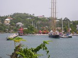 Le carénage dans la ville de St Georges à Grenade , abrite une marina, mais aussi les pêcheurs, les transports de passagers, et de marchandises... |