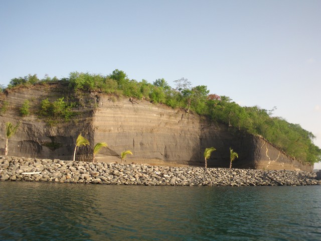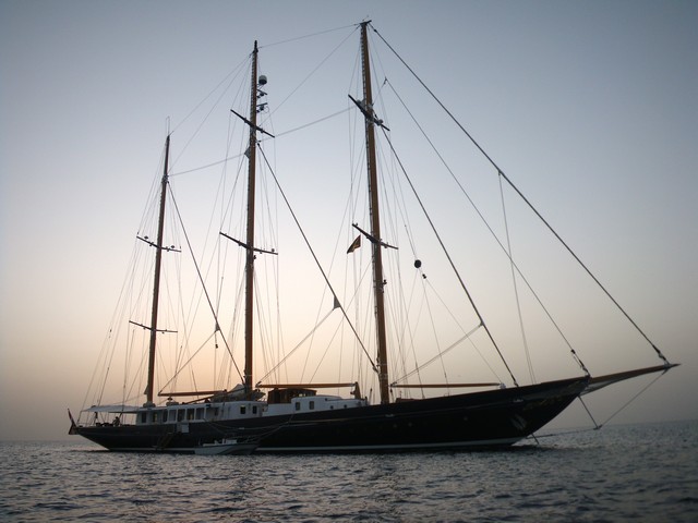 Un dernier regard pour la falaise face au mouillage . | De superbes espars en bois équipent ce bateau . |