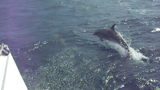 Et nous voilà en chemin vers Les Testigos; les dauphins nous ouvrent la route! |