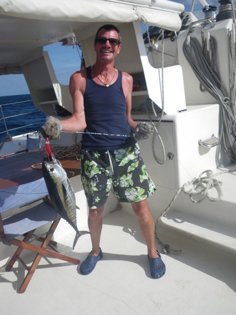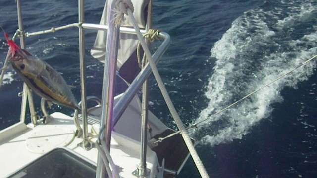 Mais voilà une bonite qui fera moins la maligne | 2 bonites et un barracuda seront le butin du jour | Nous mouillons l'ancre devant Testigo Grande |