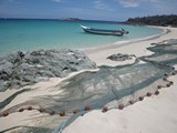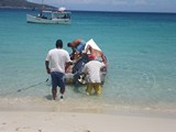 Après avoir salué "Sucre d'Orge", seul autre voilier au mouillage, posons l'annexe sur la plage pour un premier contact avec Testigo Pequeno |