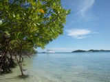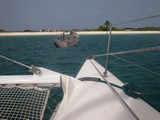 et une quantité impressionnante de récifs coraliens ; les cartes étant fausses nous naviguons avec vigilance à la couleur de l'eau | Le mouillage de Carenero,, un hâvre de paix, après avoir évité le pâté de corail au milieu du passage | Nous allons bavarder un peu avec les pêcheurs installés sur l'ïle ; 3 maisons rudimentaires mais quelle vue! |