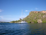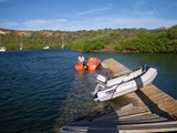 Spanish Water est un abri naturel immense accueillant des centaines de bateau | Le ponton des Pêcheurs, celui de L'Asiento, ou alors à Cabrita Bay ce ponton un peu coulé pour accueillir l'annexe |
