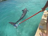 Quelques soins au bébé dauphin globicéphale tropical en attendant que ses congénères passent au large et qu'il poursuive son voyage |