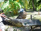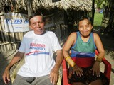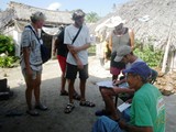 Ils sont logés, et elles lui enlèvent même une épine du pied au sens propre du terme! | Nous partons pour une petite randonnée avec notre guide David! (c'est pas lui sur la photo!) | Horacio, un des sahilas, vient à notre bord; nous lui donnons des revues et du paracétamol! et à terre allons signer le livre d'or! |