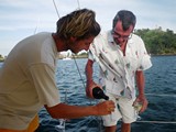 Nous n'aurons pas beaucoup l'occasion d'y faire du tourisme; en effet profitant que la vie y est moins chère que dans nos futures destinations, nous remplissons les cales | Pour réparer la montre de Thérèse, ce sera 2$ (parce que c'est dimanche!....) |