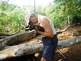 La chienne attrape un iguane qu'elle rapporte à sa maîtresse qui le mangera |