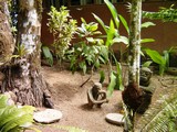 Nous nous amarrons avec l'annexe au ponton d'un hôtel, nous promenons dans leurs jardins, et nous faisons offrir un café dans la cuisine de l'hôtel