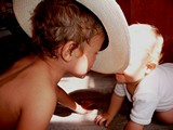 Que c'est bon de retrouver sa fille | et son petit-fils |