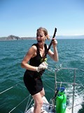 Faute de poisson, c'est un bout de bois que Claire remonte de la ligne à la traîne |