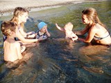 Bahia Ballena : recontre avec des artistes installés sur cet espace tranquille appartenant à un américain | Ballade dans la forêt jusqu'au Rio Tambord | Avec retour par la plage, où le franchissement de rochers ne rebute pas Enzo |