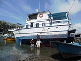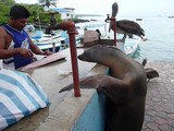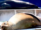 Les bateaux ne sont jamais inocuppés, car aussitôt qu'il n'y a personne les otaries prennent leurs aises |