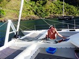 Arrivés à Fatu Hiva, le guindeau nécessitera plusieurs heures du génie de bricolage de Domi pour fonctionner à nouveau |