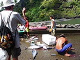 Débarquement sur la cale où les pêcheurs viennent d'entrer |