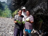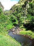 Le père de Nadia et Pascaline fait la culture du Coprah | Il pleut souvent à Fatu Hiva, et les cours d'eau serpentent | Nous quitterons Emilienne et Angelbert alourdis de fruits frais |