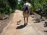A l'arrivée au village d'Atiheu un chien nous accompagne de tellement près, qu'il manque de nous faire trébucher à chaque pas