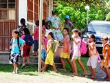 Les enfants rejoignent leur classe. Nous retrouvons également la petite famille de Siver Lining avec qui nous faisons le chemin du retour vers Anaho | Le lendemain cueillette de graines au programme; mais nous restons discuter avec Diana qui vide avec dextérité les noix de coco