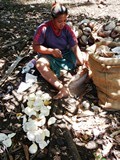 Que sa soeur a cassées auparavant. Ensuite quelques jours de séchage, et le coprah sera embarqué pour Tahiti |
