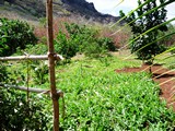Les sentiers ne manquent pas; le lendemain nous empruntons celui qui mène à la baie d'Hakatea.. Quelques cultures maraîchères malgré une sécheresse inhabituelle |