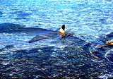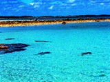 Nous sommes les pieds dans l'eau à la recherche de porcelaines; l'eau est limpide et le spectacle est permanent |
