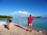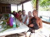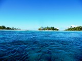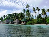 Dimanche, jour de fête, nous déjeunons à "Tetamanu Sauvage" avec Marie-Jo et Loîc, biologistes à Papeete | Plusieus pensions! tous les bungalows regardent le lagon! |