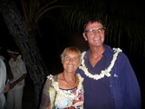 Ambiance tahitienne : collier de fleurs et fleur de tiaré sur l'oreille (à gauche quand le coeur est pris!) |