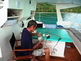 Vue de la mer, Moorea est spendide! et pour le farniente c'est pas mal! | Malgré leur prix pharaonesque, les lunettes de vue de Domi vivent mal nos vies de marin; alors perdu pour perdu, il se lance dans le lustrage! ....
