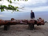 Rencontre avec un sculpteur et son tiki sur la plage. |