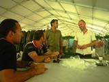 Domi doit faire quelques jours de figuration dans le film "L'Ordre et La Morale". Avant l'heure des essayages de costume, quelques formalités à faire à Papeete. Du coup on y flâne un peu avant l'heure du RV | Les scènes du film où il figure sont tournés sur le site de LA PRESIDENCE de Tahiti | Le recrutement des figurants est orchestré par David (debout à gauche). Un énorme chapiteau abrite l'équipe