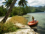 La fabrique de jus Rotui fait aussi distillerie, et Solange nous fait tout déguster. Nous reviendrons lui apporter du rhum de Guadeloupe et du punch planteur | Nous avons toujours un arbre ou un caillou pour attacher notre annexe |