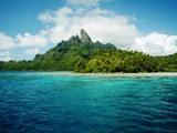 Ancien volcan (point culminant environ à 700 mètres), entouré d'un grand lagon et d'un récif-barrière, Bora Bora attire de nombreux touristes |