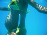 Première plongée en Polynésie pour la passagère clandestine d'Elodie; il fera plus froid quand Emma pointera son bout de nez en France en mars |