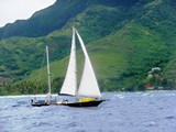 Chariot de grand'voile de nouveau prêt au service, Inapo prend le large vers Huahiné . |