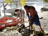 Le lendemain on part à la découverte du motu. Il est habité par une vingtaine de familles qui y pratique la culture maraichère et la pêche |
