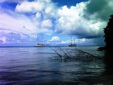 Après une heure de navigation, entre l'île de Huahiné et le récif, nous posons l'ancre sous le vent du Mont Teapaa |
