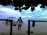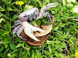 A la tombée du jour nous nous frayons un chemin pour revenir à la plage | En veillant à ne pas déranger dans l'herbe les nombreux crabes de cocottiers |