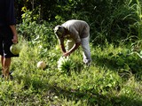 Siki a entrepris de nous garnir le garde-manger; une papaye à point | des potirons qui s'épanouissent de manière sauvage, des bananes... |