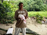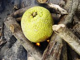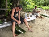 On a préparé à côté un autre feu pour la cuisson du uru, le fruit de l'arbre à pain |