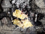 Pendant ce temps le poulet cuit sur le feu qui a servi à la cuisson du uru. |