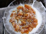 tout comme le poe de potiron découpé en morceaux et arrosé du lait de coco qu'on vient d'obtenir | Lait de coco parfumant aussi le uru. Le tout accompagné du poulet; vous comprendrez que ce soir on se couchera sans avoir besoin de dîner! |