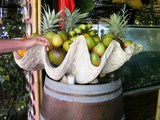 Belle corbeille de fruits ce bénitier, bivalve que nous avons rencontré en très grandes quantités aux Tuamotu, et que nous trouvons en nombre plus modeste ici. |