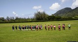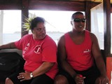 Nos épiciers, et néanmoins voisins en face du mouillage, Teresa et Edwin nous invitent gentiment à partager leur dimanche | Et nous voilà supporters de l'équipe au match de foot! On ne parle pas du score! |