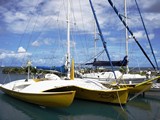 20 milles séparent Huahiné de Raiatéa où nous posons l'ancre devant le carénage; Domi y reconnait l'ancien Lejaby-Rasurel sur lequel il avait couru "La Rochelle-Nelle Orléans" en 1982 |