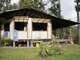 Ma cabane à Raiatéa tapie au fond des bois... Claude Brun contre qui nous avions couru La Transat "Lorient-Les Bermudes-Lorient" en 1979 est installé ici avec Fanny; ils sont arrivés en voilier il y a 6 ans avec leurs 3 enfants. |