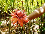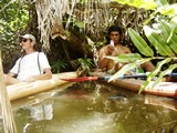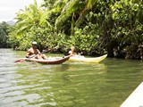 James nous propose une ballade en kayaks sur la rivière. Il récolte les fruits pour le pique-nique, et nous voila en route pour le jardin botanique |