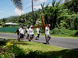 Au retour nous recroisons la marche religieuse que nous avions dépassée le matin; ils ont le mérite de faire tour de l'île à pied sous un soleil ardent |