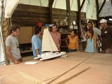 Beloune et Louis construisent un catamaran de 16 mètres en bois époxy, à proximité de leur charmant faré. |