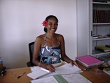 Cette fois nos vélos nous conduisent à Poutoru. Nous poursuivrons, à travers un village paisible, jusque la fin de la route qui se termine dans l'eau | Nous en profitons pour ramener à Beloune et Louis des papiers qui les attendaient au centre adminstratif de Poutoru, bureau tenu par la charmante Ina . |